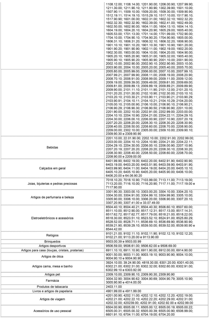 MERCADORIAS ALCANÇADAS PELO REGIME DE RESTITUIÇÃO